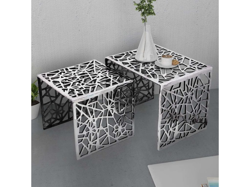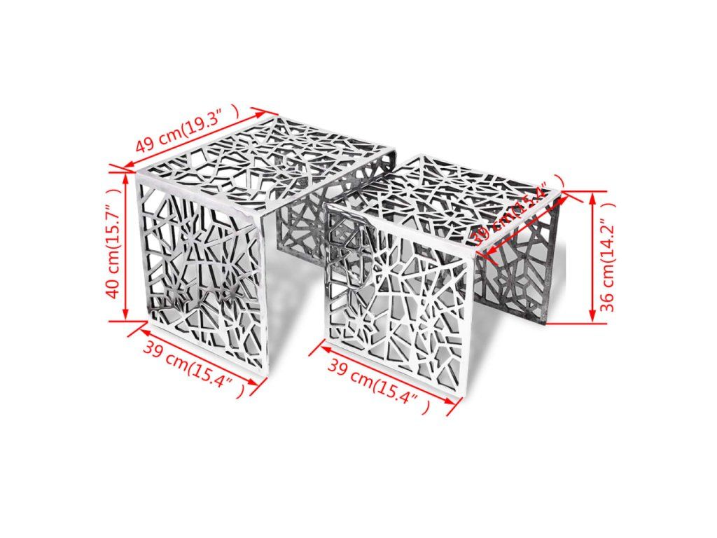 Multidom Sada dvoch štvorcových bočných stolíkov, hliník, strieborná