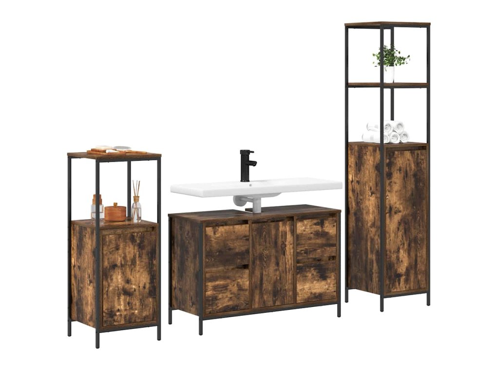 Multidom Sada kúpeľňového nábytku so zásuvkou 3 pcs Dymový dub a čierna