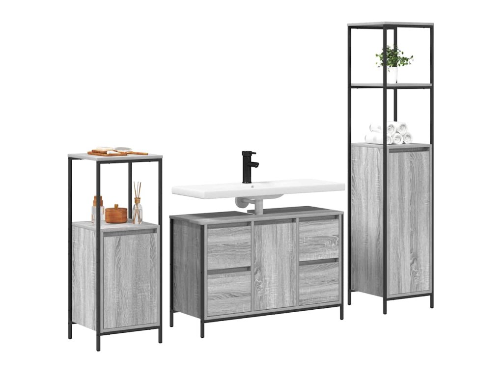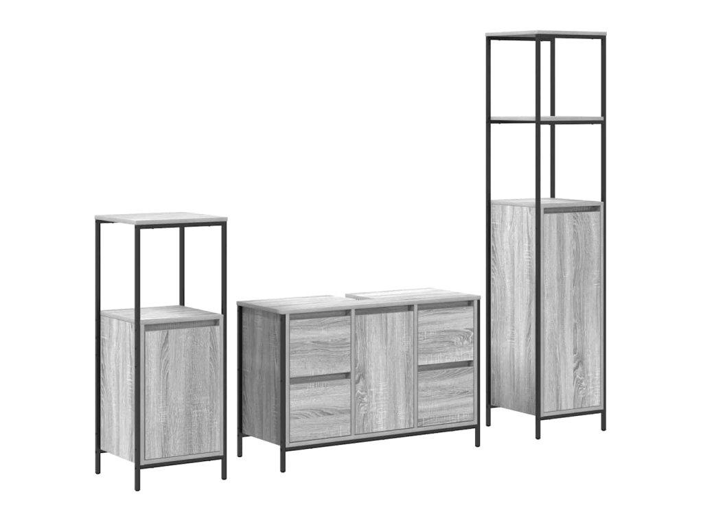 Multidom Sada kúpeľňového nábytku so zásuvkou 3 pcs Sivý sonoma a čierny