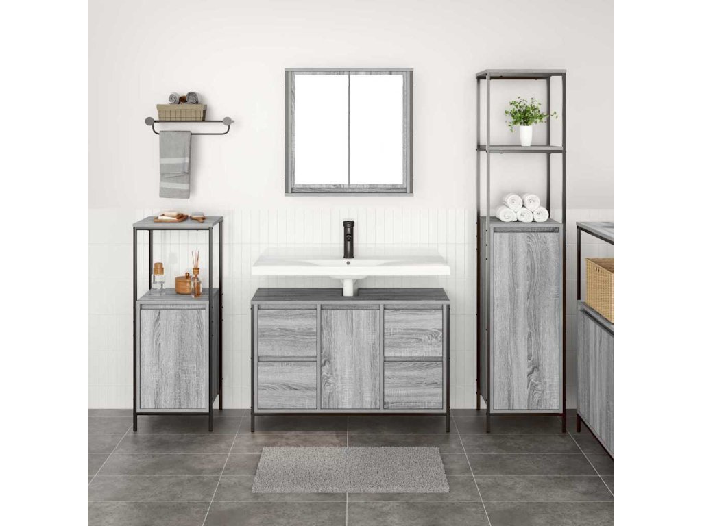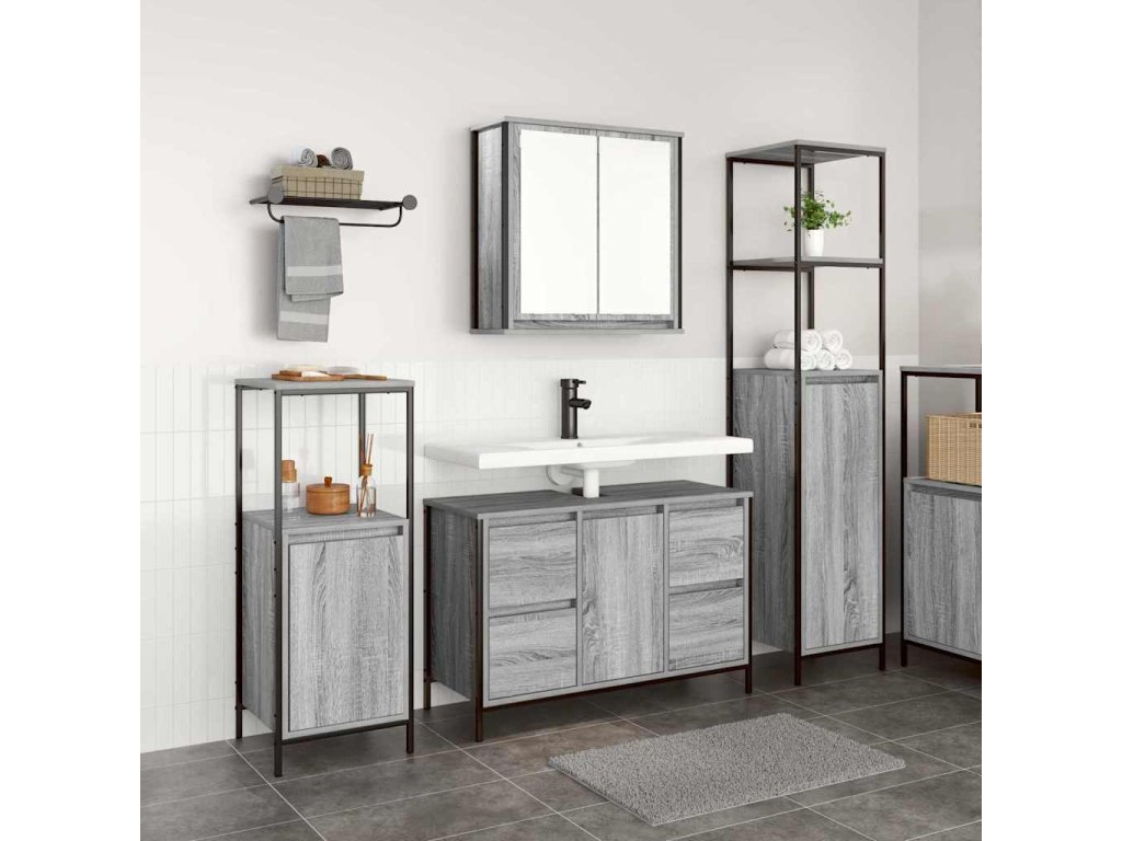- Praktický dizajn úložiska: Set ponúka množstvo úložných možností s rôznymi zásuvkami, poličkami a dverami. Udržujte poriadok s dostatkom miesta pre všetko, od uterákov po toaletné potreby. Premyslená konfigurácia umožňuje rýchly prístup aj diskrétne úložisko.