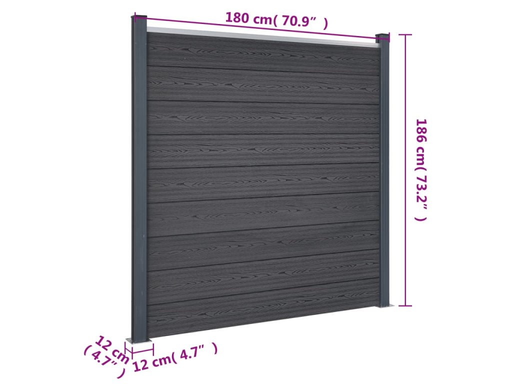Multidom Sada plotových panelov sivá 180x186 cm WPC
