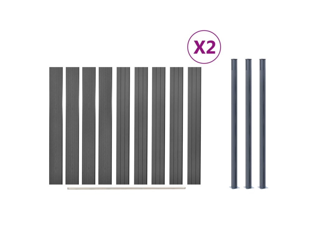 Multidom Sada plotových panelov sivá 353x186 cm WPC