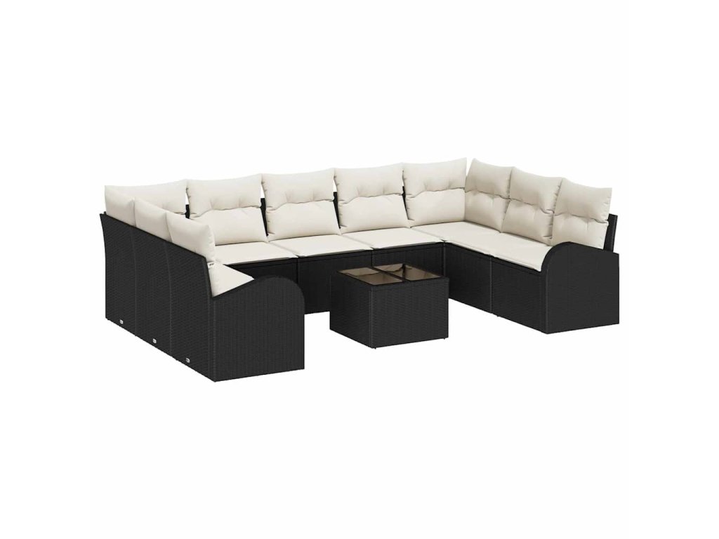 Multidom Sada pohoviek s vankúšom 10 pcs Čierna Poly Ratan