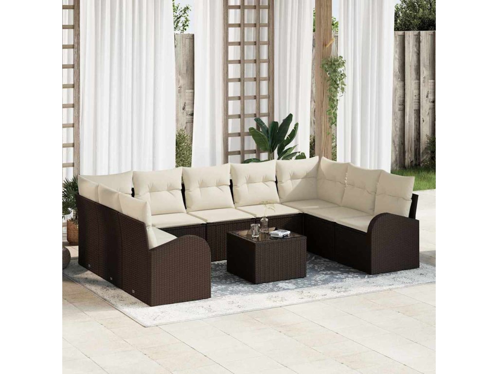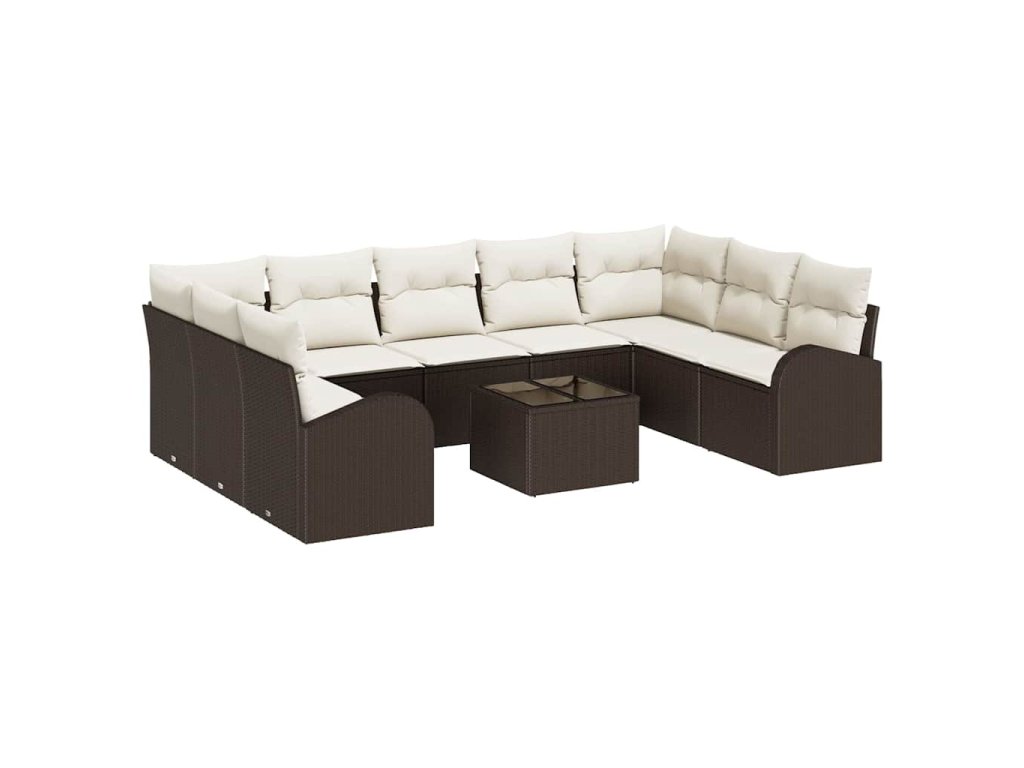 Multidom Sada pohoviek s vankúšom 10 pcs Hnedá Poly Ratan