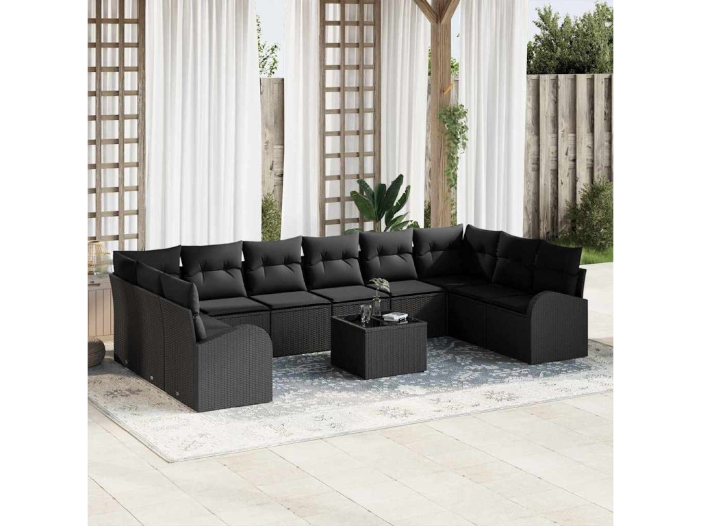 Multidom Sada pohoviek s vankúšom 11 pcs Čierna Polyratan