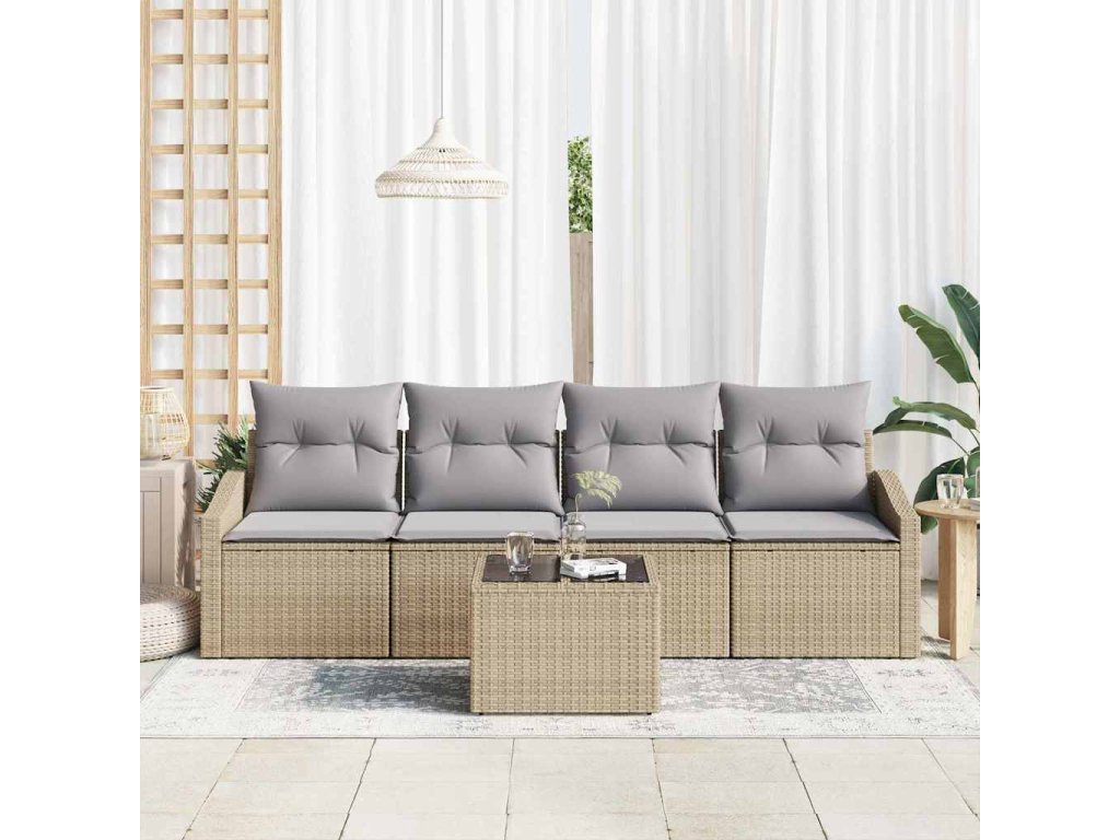 Multidom Sada pohoviek s vankúšom 5 pcs Beige a svetlo šedá polyratan