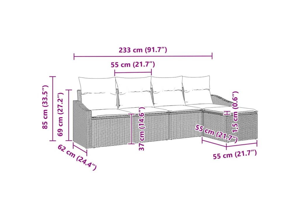 Tento moderný záhradný set je skvelý na vonkajšie použitie, spojenie funkčnosti a jednoduchej estetiky. Skvele sa hodí do záhrady alebo na terasu s čistými líniami a tkaným vzhľadom, ktorý dopĺňa akékoľvek vonkajšie prostredie. Set ťa pozýva na relaxáciu s elegantným zázemím a pohodlnými vankúšmi na sedenie, čo podporuje pohodlné slnenie vo tvojej vonkajšej oáze.