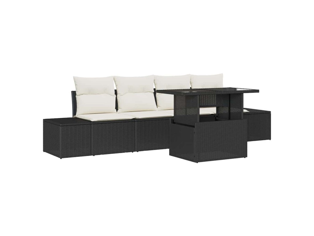 Multidom Sada pohoviek s vankúšom 5 pcs Čierna a krémová polyratan
