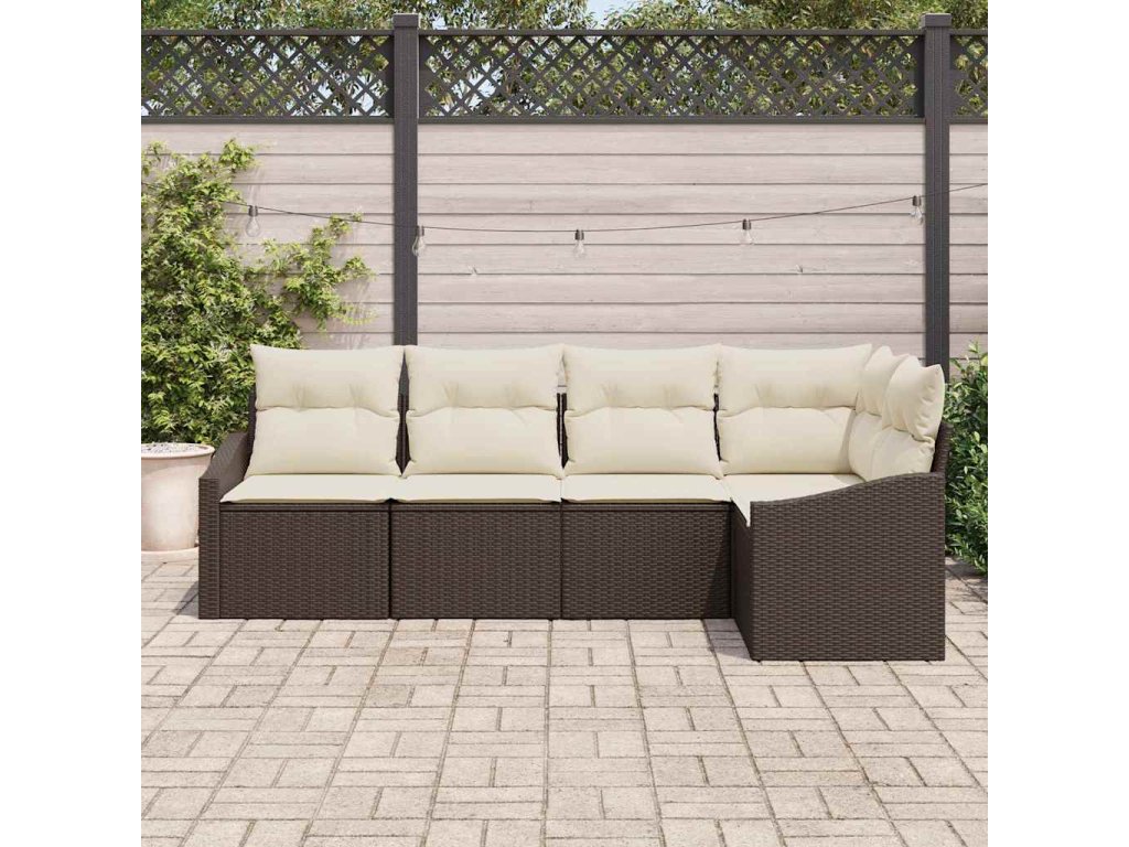 Multidom Sada pohoviek s vankúšom 5 pcs Hnedá polyratan