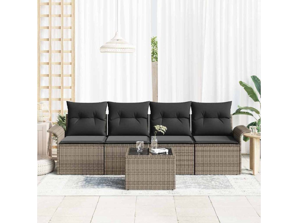 Multidom Sada pohoviek s vankúšom 5 pcs Sivá polyratan