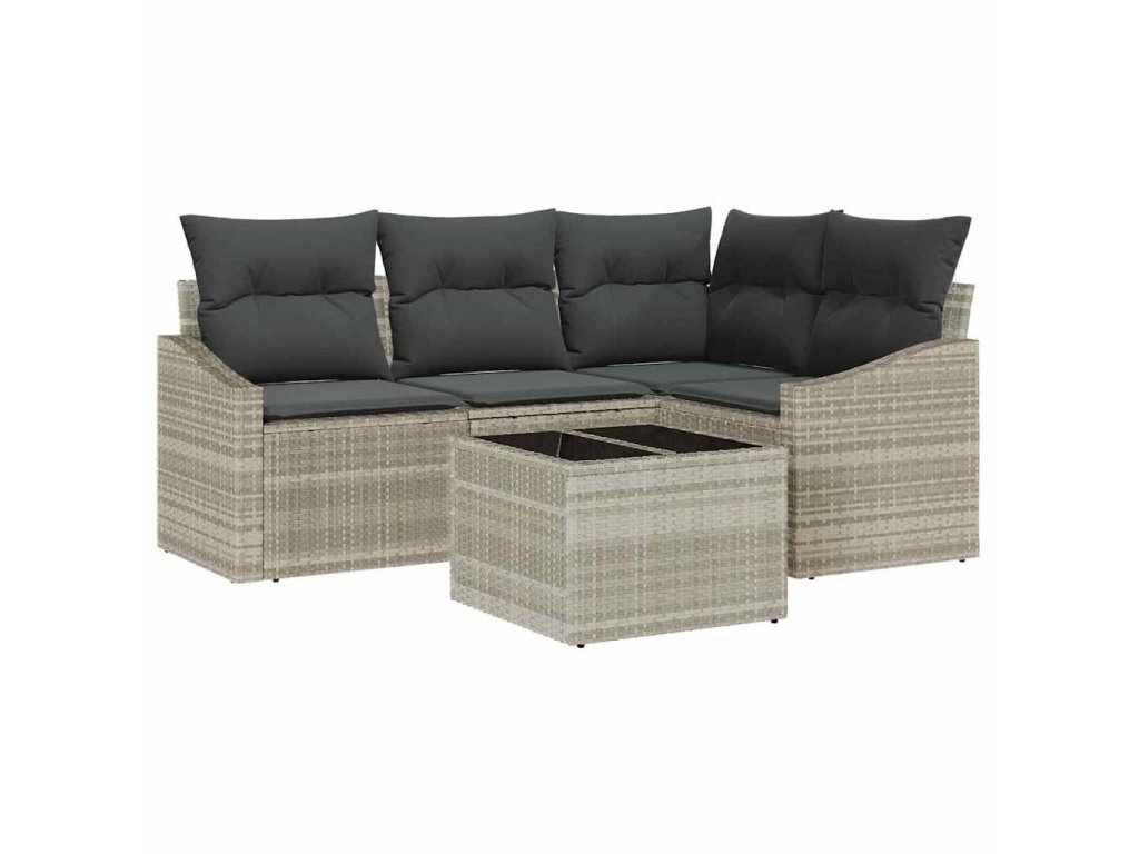 Multidom Sada pohoviek s vankúšom 5 pcs Svetlosivá polyratan