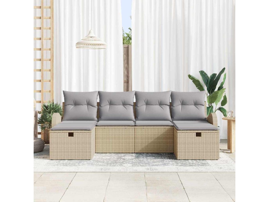 Multidom Sada pohoviek s vankúšom 6 pcs Beige a svetlo šedá polyratan