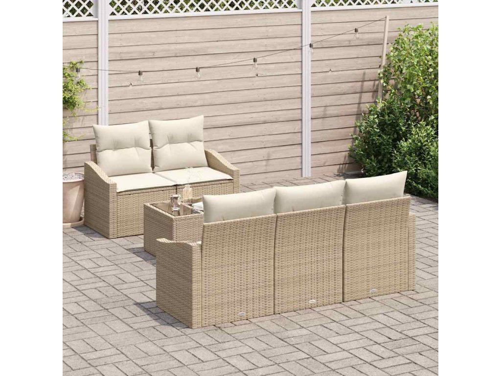 Multidom Sada pohoviek s vankúšom 6 pcs Béžová a krémová polyratan