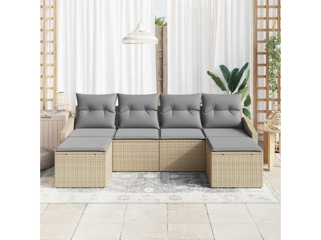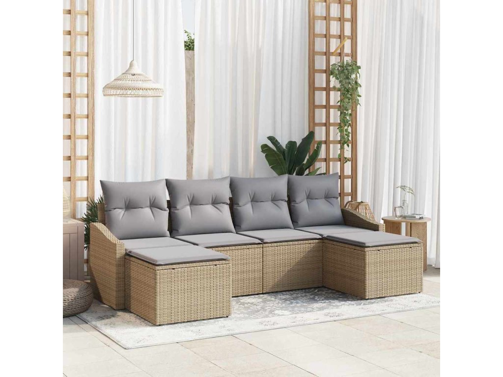 Multidom Sada pohoviek s vankúšom 6 pcs Béžová polyratan
