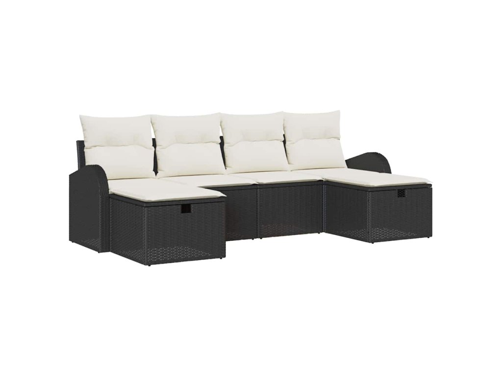 Multidom Sada pohoviek s vankúšom 6 pcs Čierna a krémová polyratan