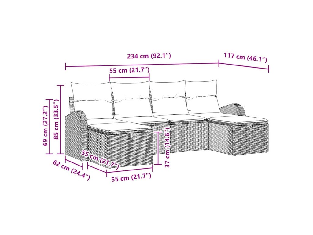 - Materiál poly ratan: Tento gaučový set je vyrobený z kvalitného poly ratanu, ktorý má krásnu tkanú textúru, čo posilňuje jeho moderný vzhľad. Poly ratan je ľahký a veľmi odolný voči vonkajším podmienkam, takže je ideálny pre akékoľvek vonkajšie použitie, bez ohľadu na ročné obdobie.
