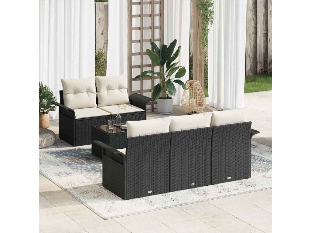 Multidom Sada pohoviek s vankúšom 6 pcs Čierna polyratan