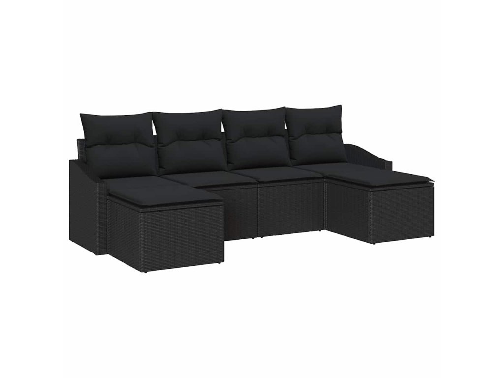 Multidom Sada pohoviek s vankúšom 6 pcs Čierna polyratan