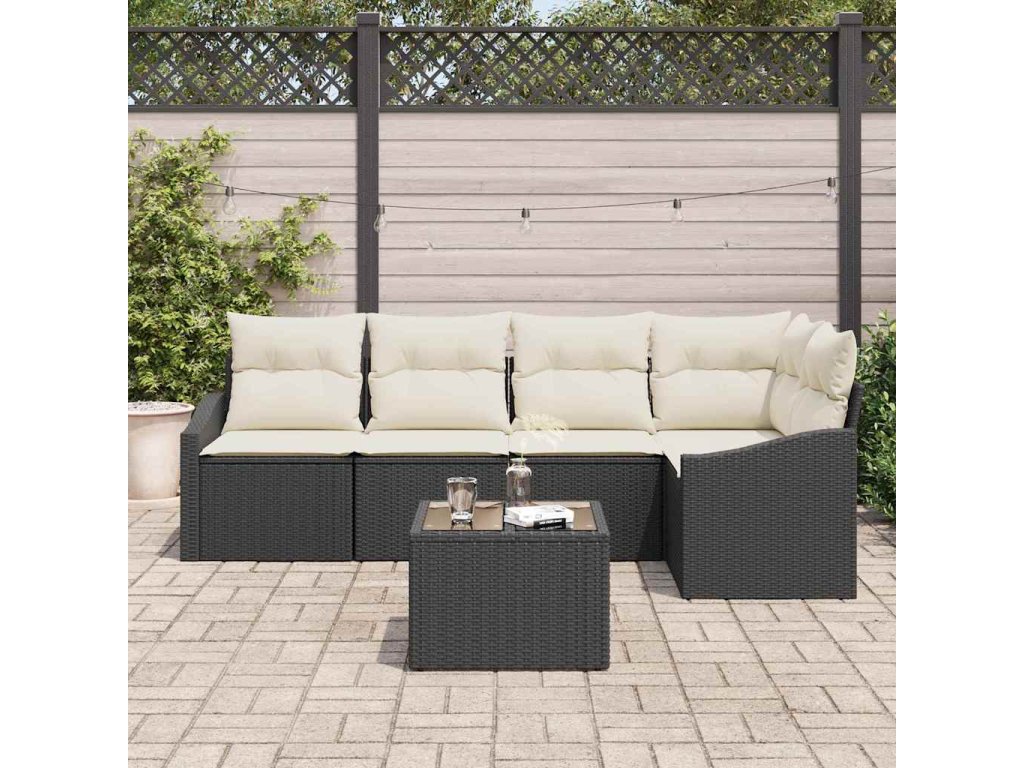 Multidom Sada pohoviek s vankúšom 6 pcs Čierna polyratan