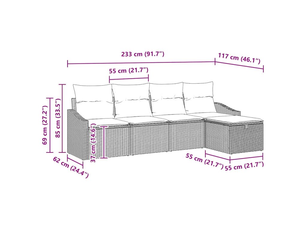 Tento set záhradných pohoviek je nevyhnutným kusom nábytku, ktorý kombinuje praktickosť a estetiku, ideálny pre individuálne terasy alebo záhrady. S jednoduchým moderným dizajnom sa ľahko zmestí do vonkajších priestorov a ponúka príjemné tkanie v kombinácii s čistými líniami, ktoré ťa lákajú k relaxácii vonku. Zladí funkčnosť s moderným vzhľadom a je skvelá pre tých, ktorí ocenia pohodlie a štýlový nábytok.