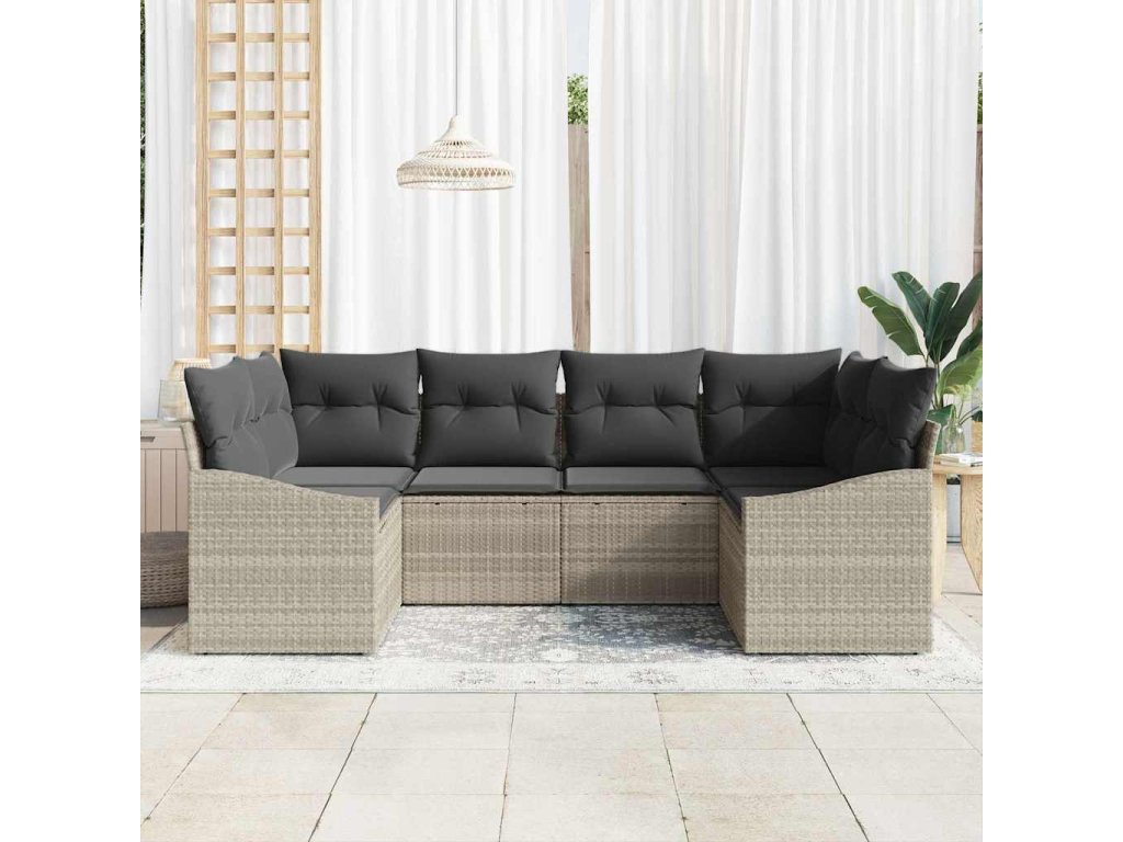 Multidom Sada pohoviek s vankúšom 6 pcs Svetlosivá polyratan