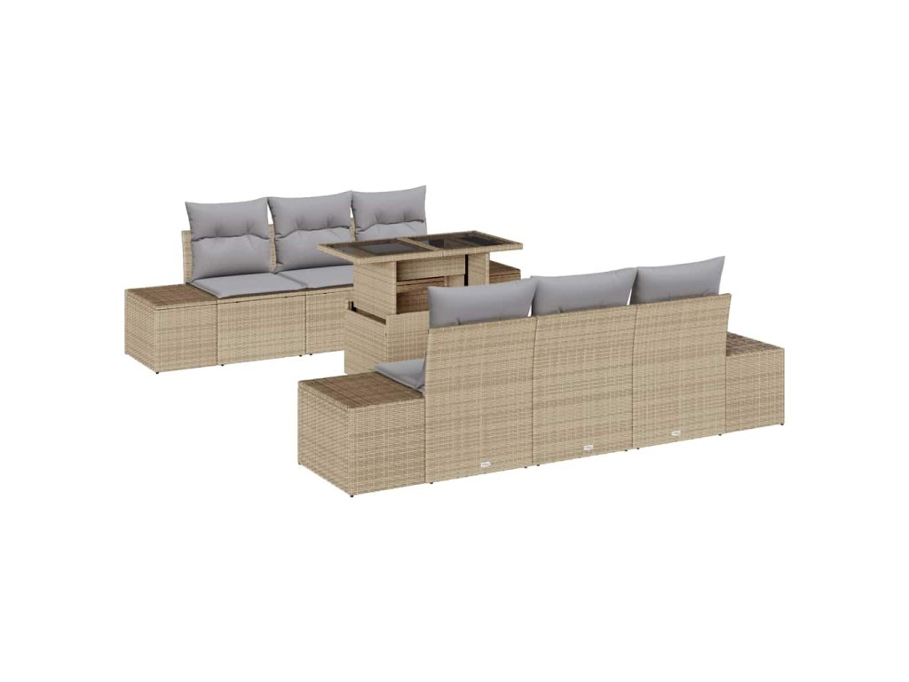 Multidom Sada pohoviek s vankúšom 7 pcs Beige a svetlo šedá polyratan