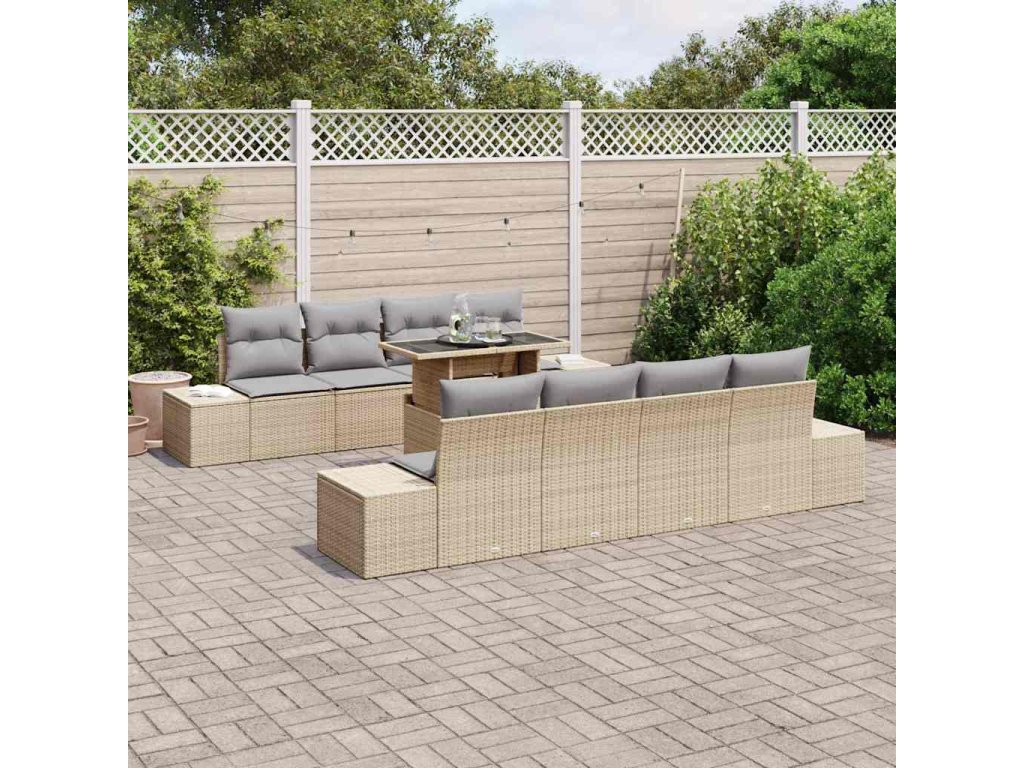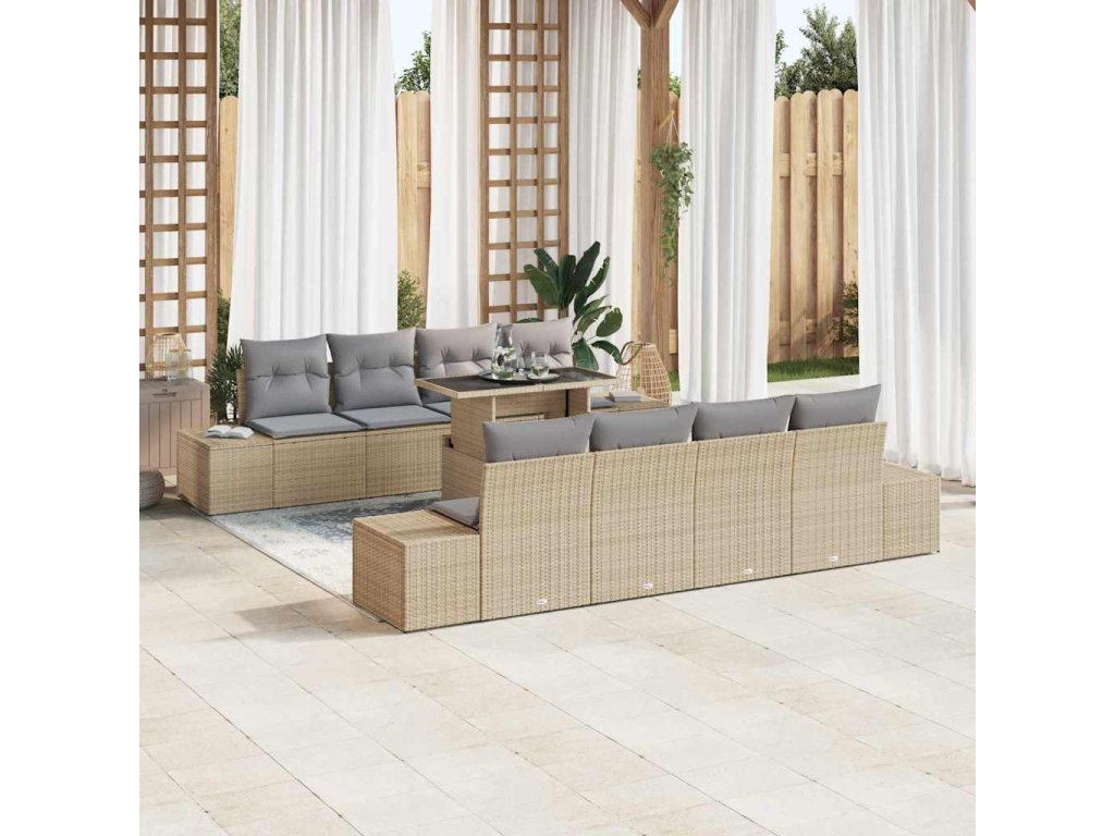 Multidom Sada pohoviek s vankúšom 7 pcs Beige a svetlo šedá polyratan