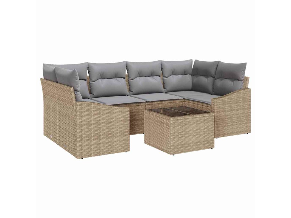 Multidom Sada pohoviek s vankúšom 7 pcs Béžová a šedá polyratan
