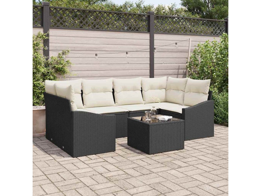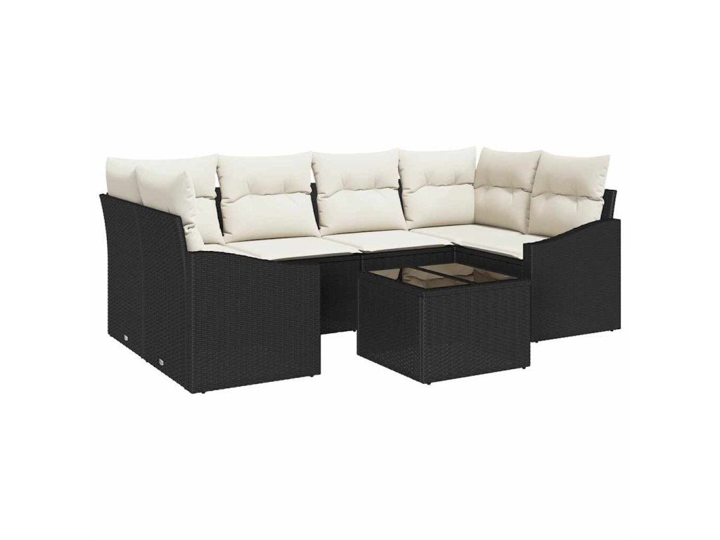 Multidom Sada pohoviek s vankúšom 7 pcs Čierna a krémová polyratan