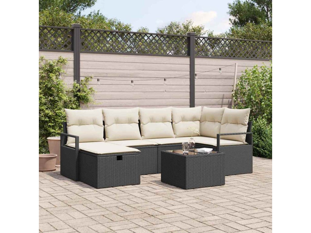 Multidom Sada pohoviek s vankúšom 7 pcs Čierna a krémová polyratan
