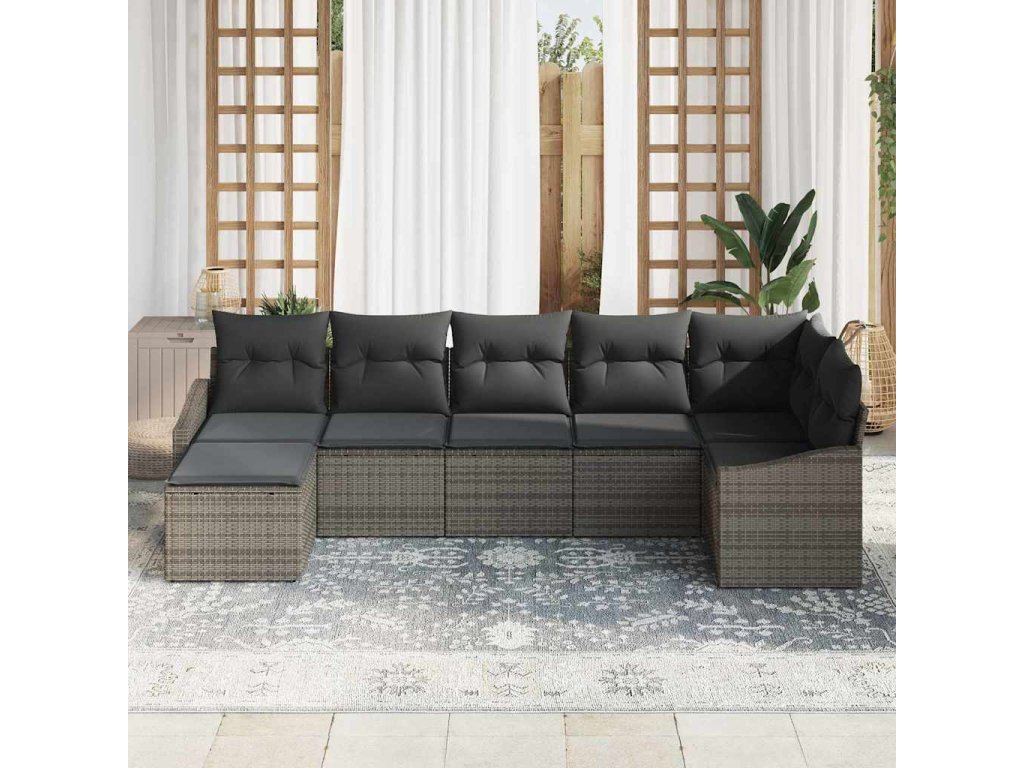 Multidom Sada pohoviek s vankúšom 7 pcs Sivá polyratan