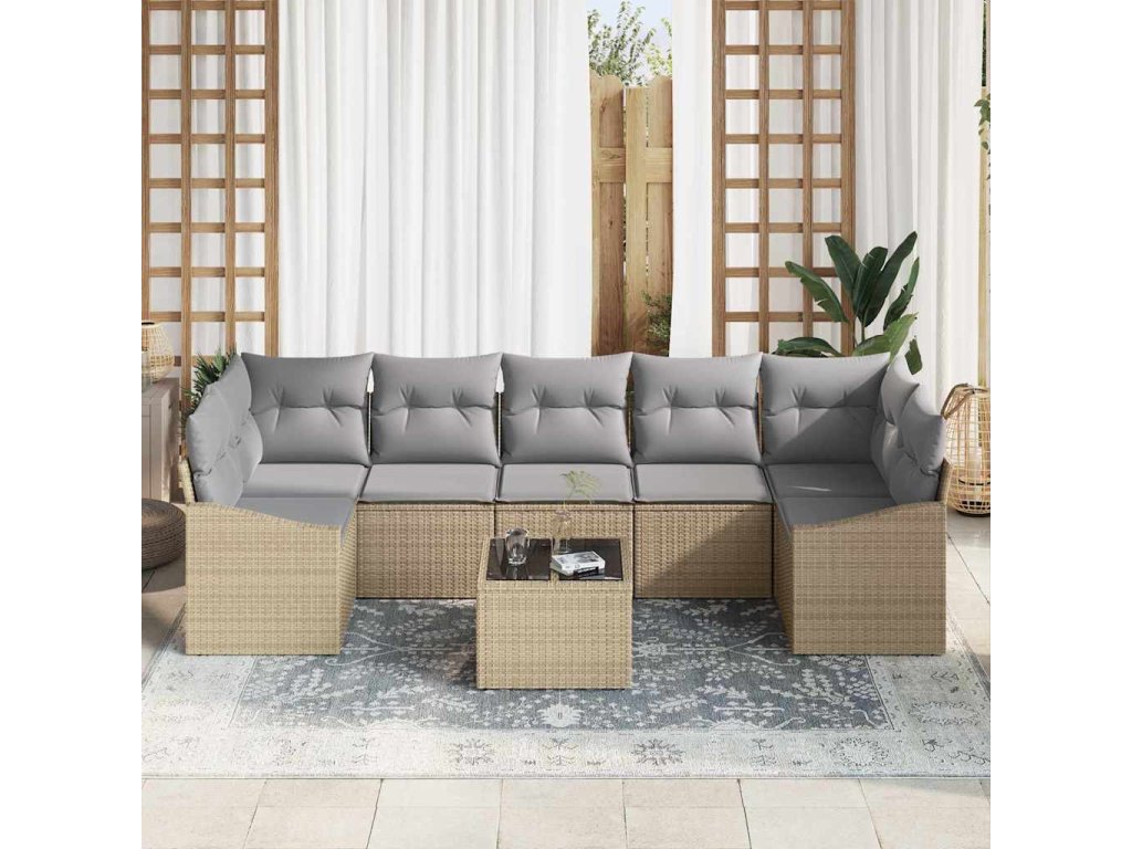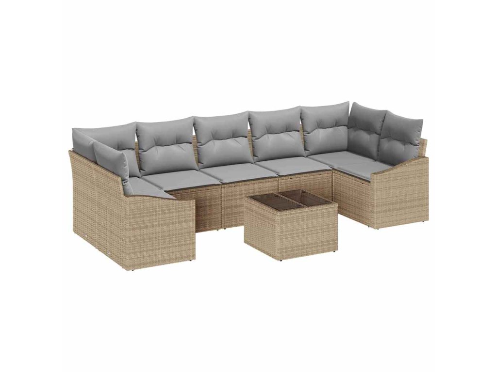Multidom Sada pohoviek s vankúšom 8 pcs Béžová a šedá polyratan