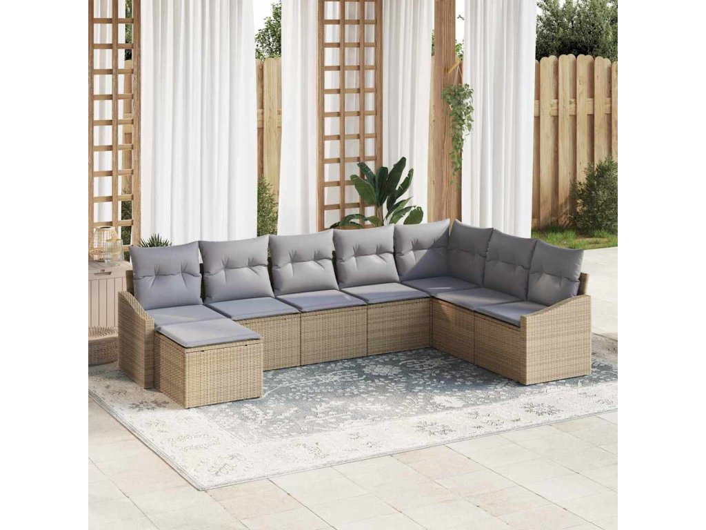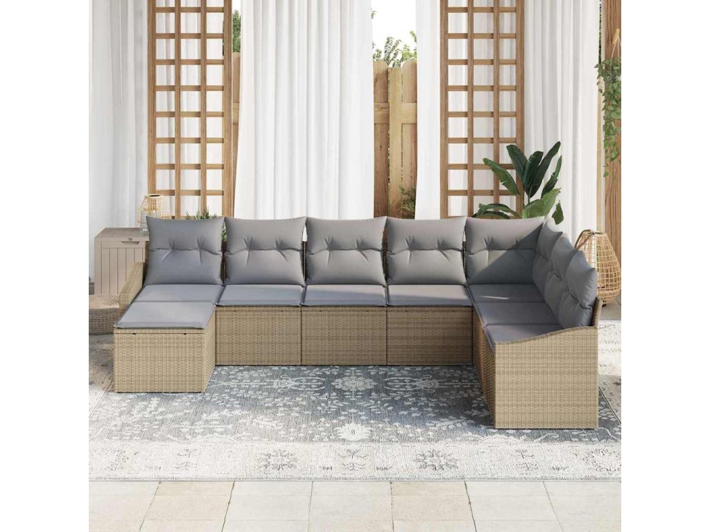 Multidom Sada pohoviek s vankúšom 8 pcs Béžová polyratan