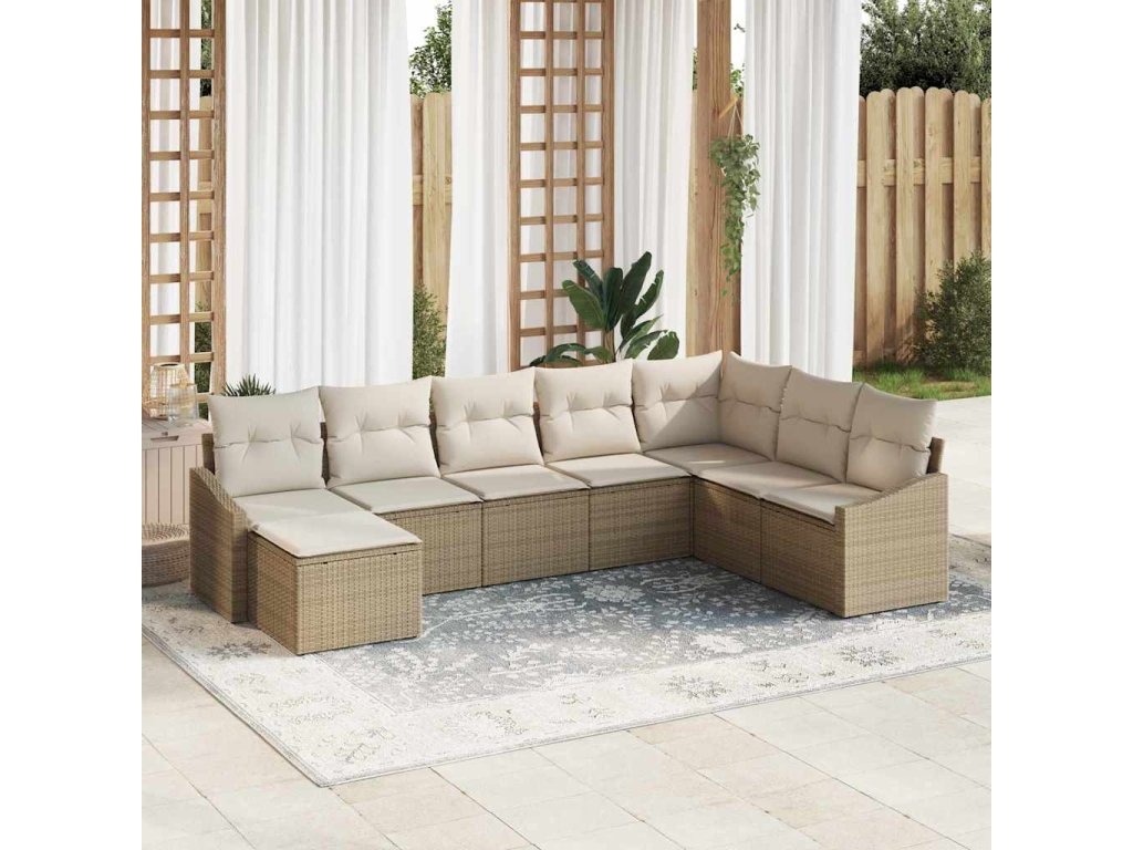 Multidom Sada pohoviek s vankúšom 8 pcs Béžová polyratan
