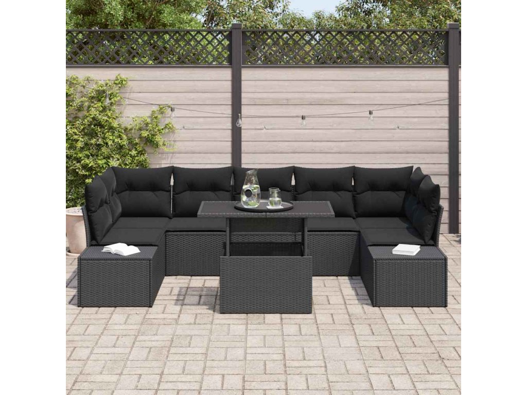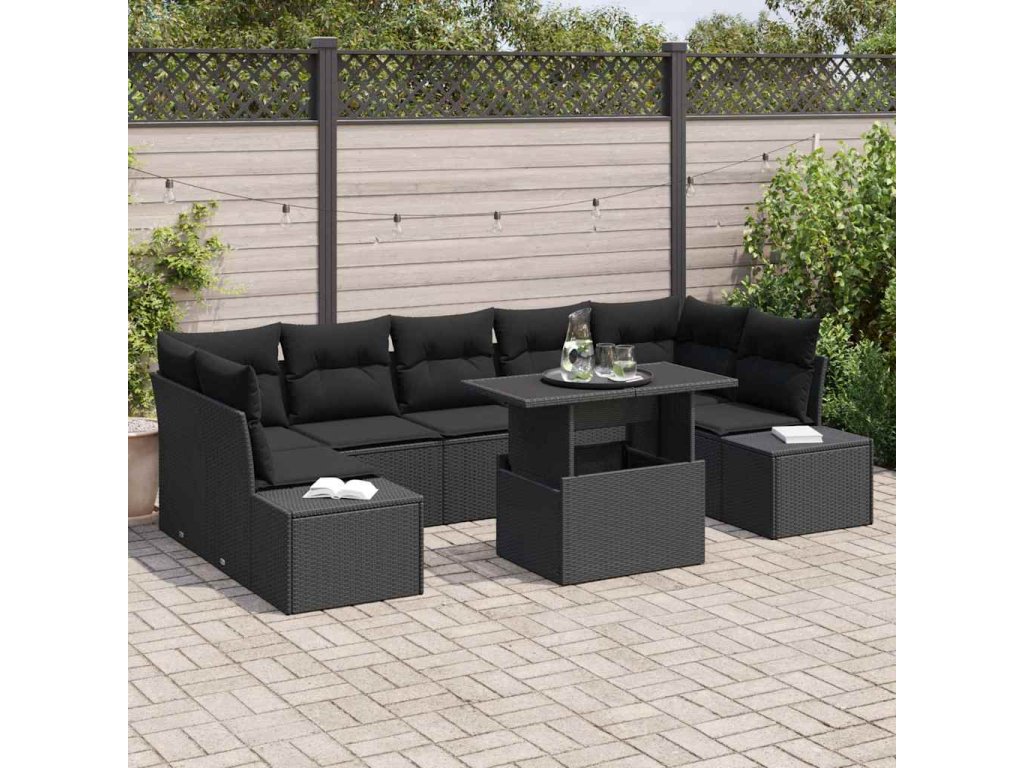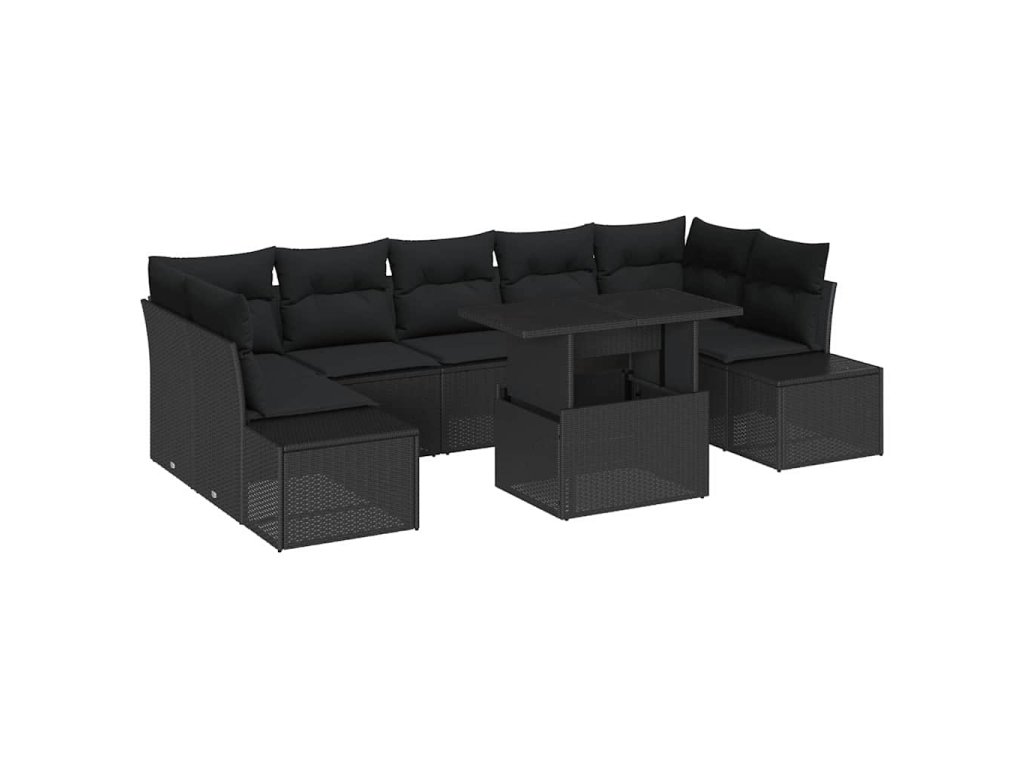 Multidom Sada pohoviek s vankúšom 8 pcs Čierna polyratan