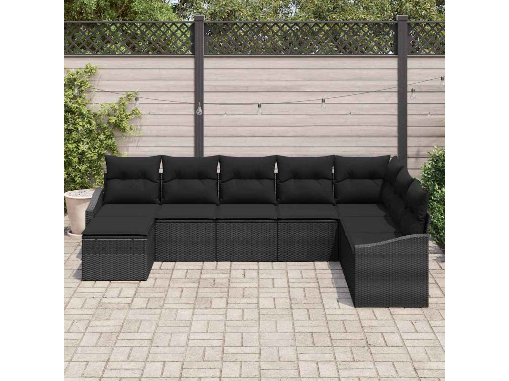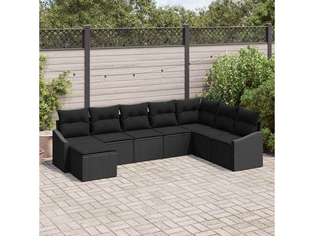 Multidom Sada pohoviek s vankúšom 8 pcs Čierna polyratan