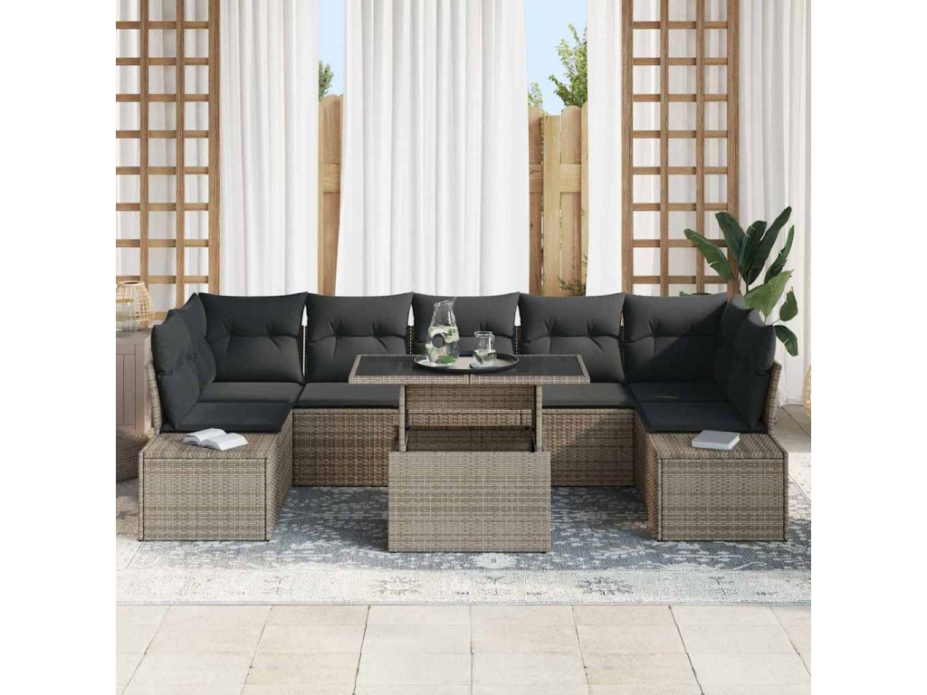 Multidom Sada pohoviek s vankúšom 8 pcs Sivá polyratan