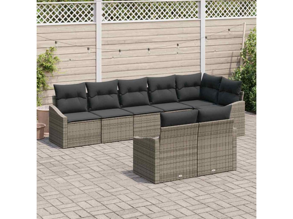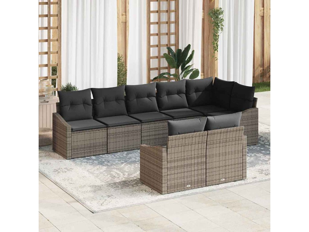 Multidom Sada pohoviek s vankúšom 8 pcs Sivá polyratan