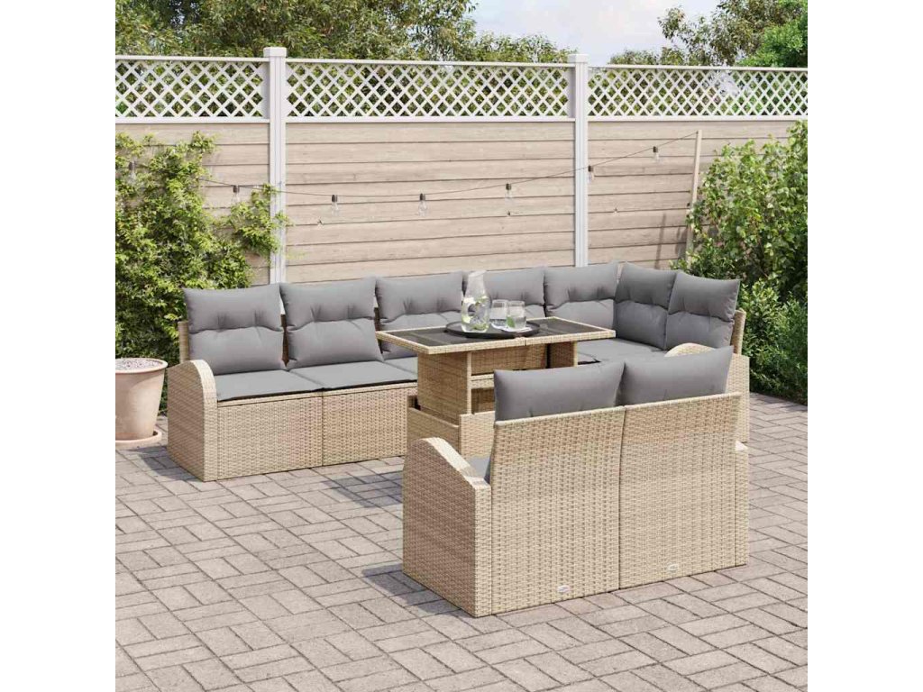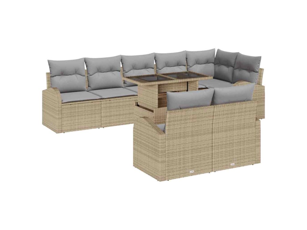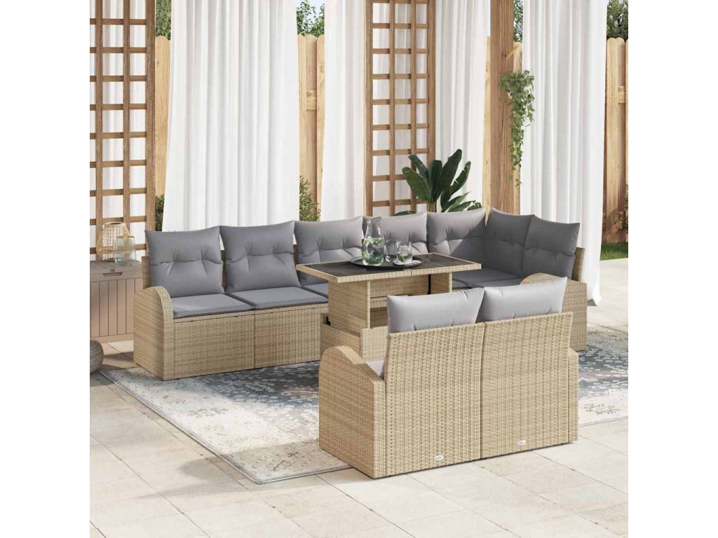 Multidom Sada pohoviek s vankúšom 9 pcs Beige a svetlo šedá polyratan