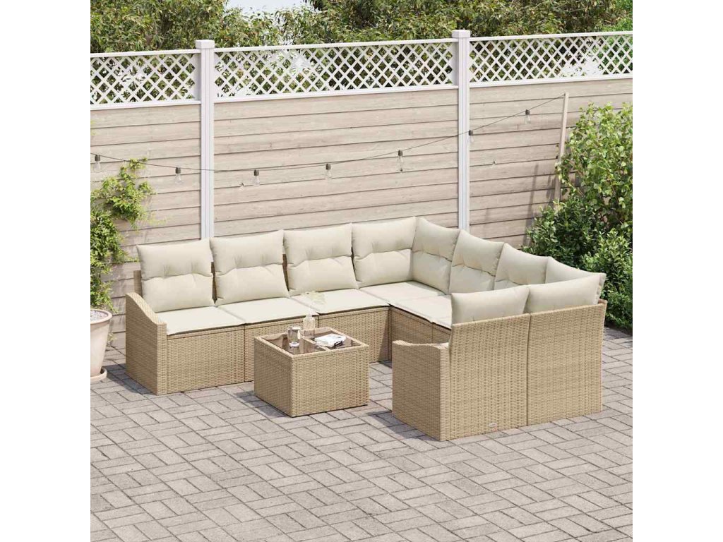 Multidom Sada pohoviek s vankúšom 9 pcs Béžová a krémová polyratan