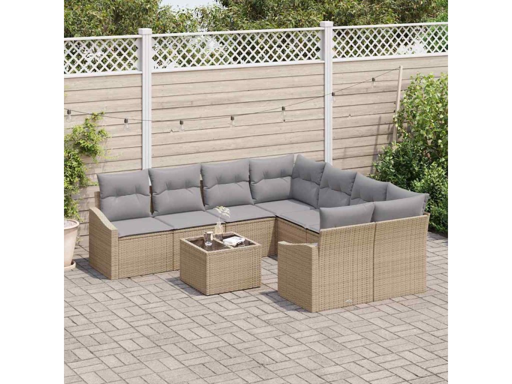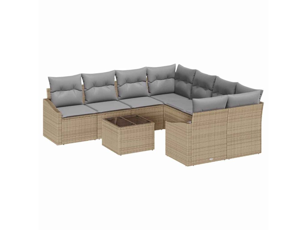 Multidom Sada pohoviek s vankúšom 9 pcs Béžová a šedá polyratan