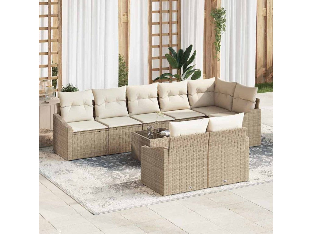 Multidom Sada pohoviek s vankúšom 9 pcs Béžová polyratan