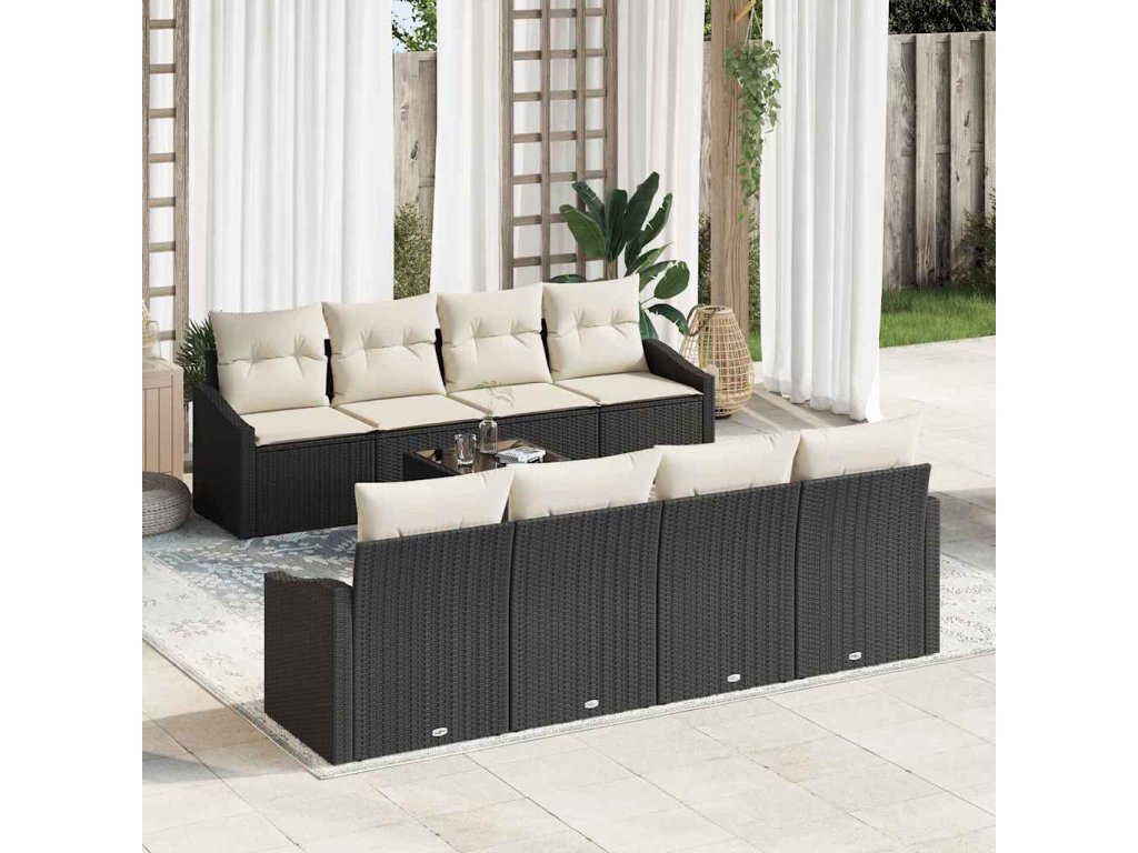 Multidom Sada pohoviek s vankúšom 9 pcs Čierna a krémová polyratan