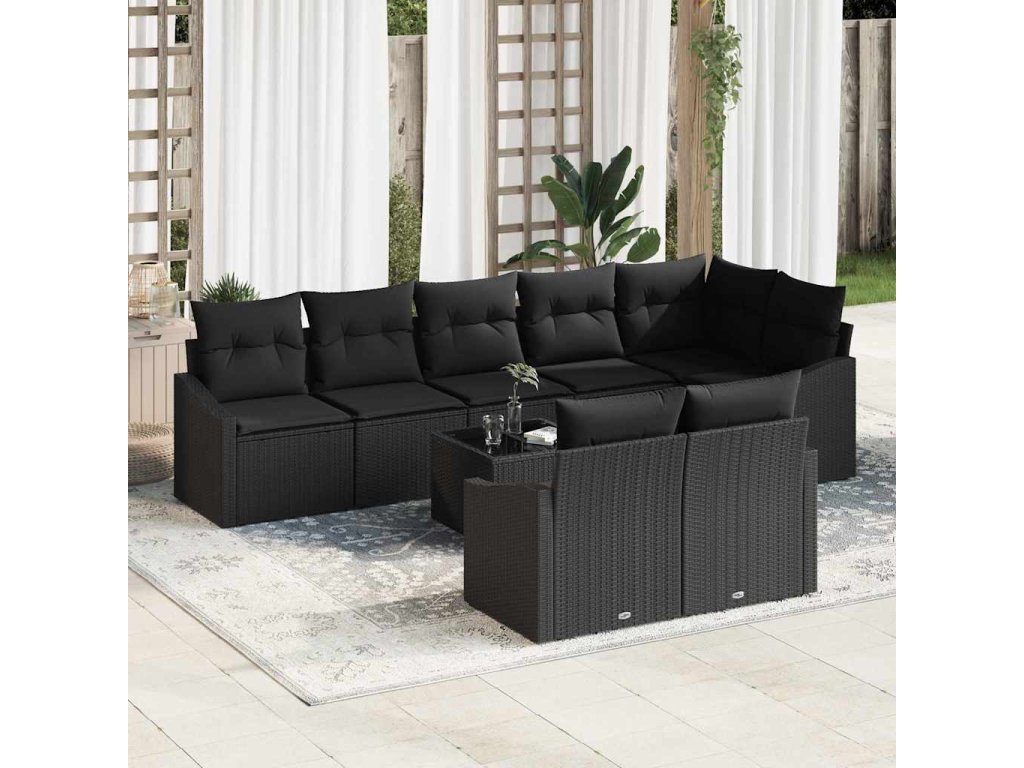 Multidom Sada pohoviek s vankúšom 9 pcs Čierna polyratan