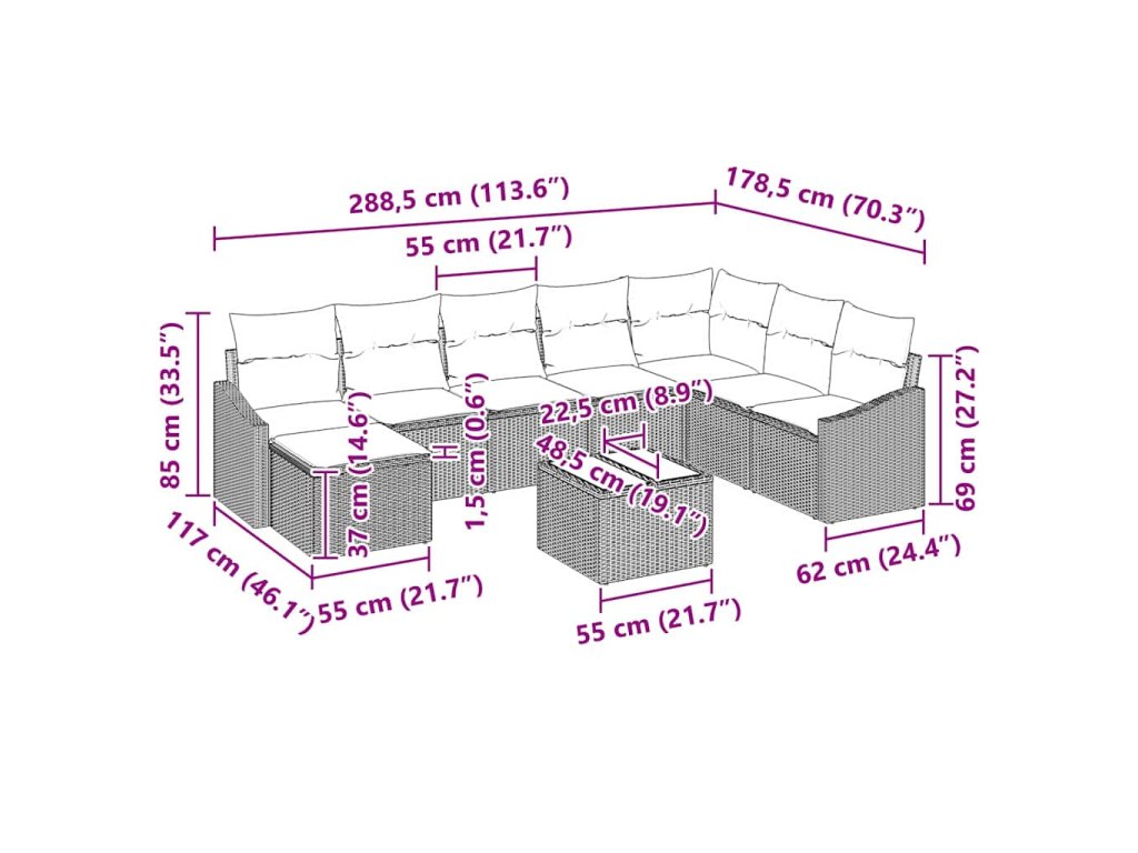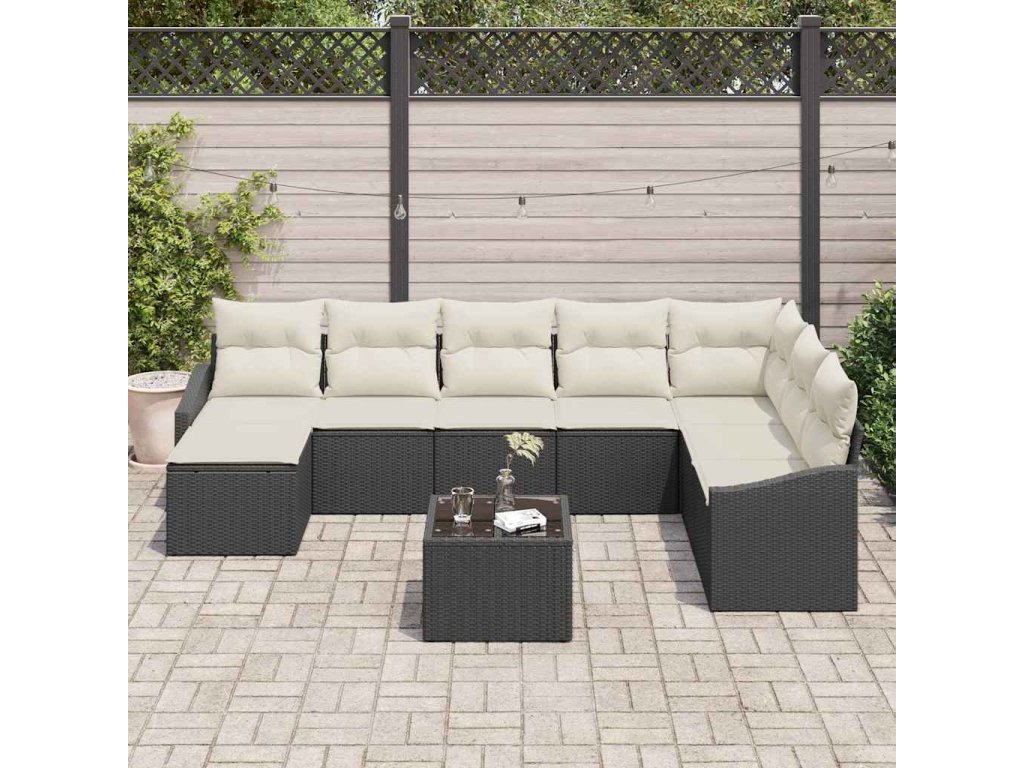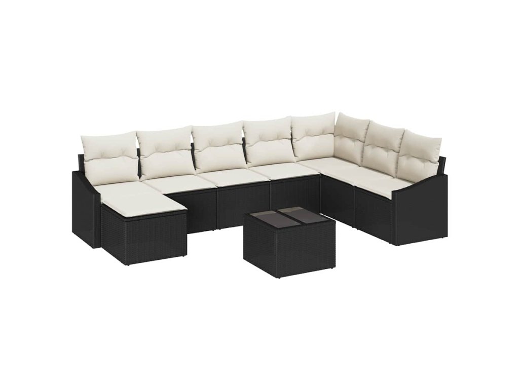 Multidom Sada pohoviek s vankúšom 9 pcs Čierna polyratan