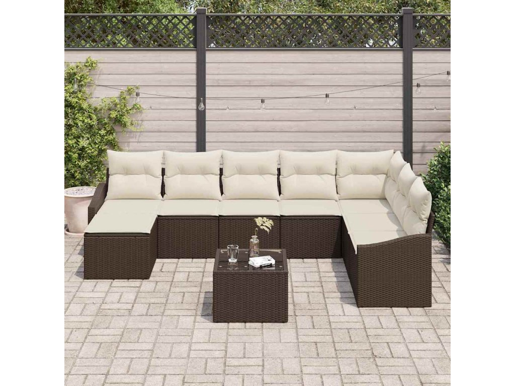 Multidom Sada pohoviek s vankúšom 9 pcs Hnedá polyratan