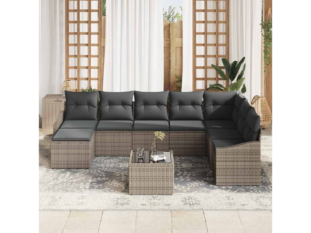 Multidom Sada pohoviek s vankúšom 9 pcs Sivá polyratan