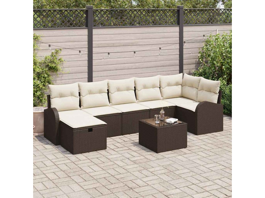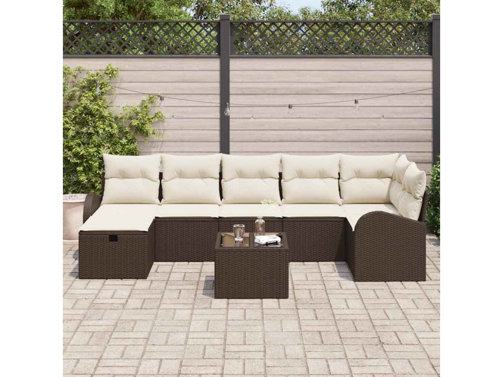 Multidom Sada pohoviek s vankúšom Hnedá a smotanová polyratan