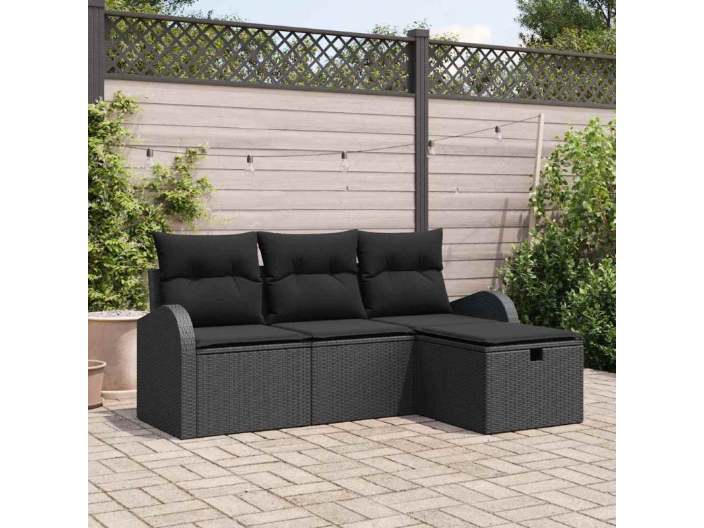 Multidom Sada pohoviek s vankúšom s úložiskom 4 pcs Čierna polyratan