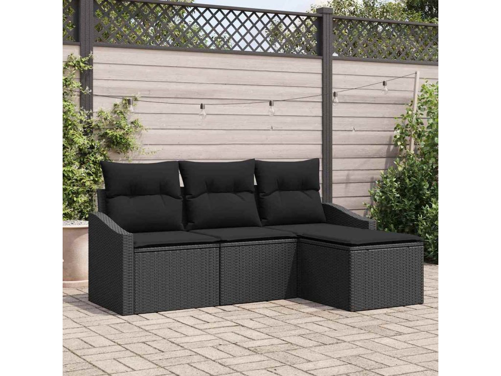Multidom Sada pohoviek s vankúšom s úložiskom 4 pcs Čierna polyratan